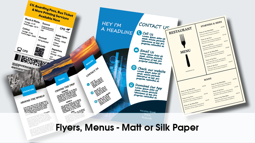 Postcards and Flyers, Leaflets, Address Cards, Menus...